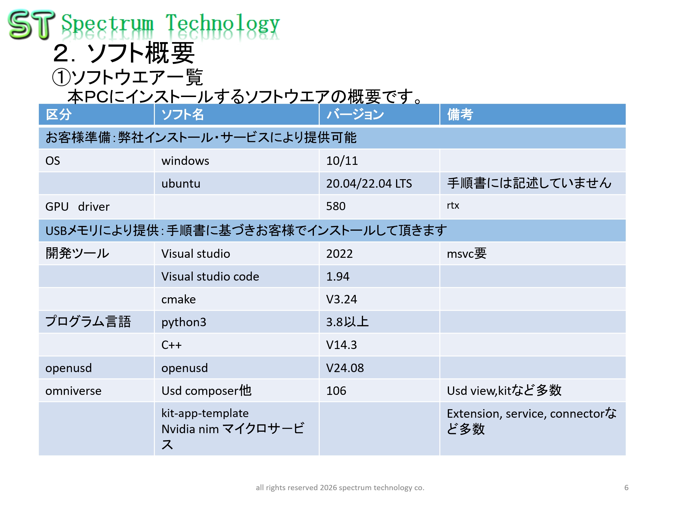 ・windows版又はubuntu版のどちらかを選択できます。一式 2 インストール・サービス ・openusd関連ソフトのwindowsへのインストールを代行で実施します。 一式 3 運用サポート 14日間は無料でサポートします。 最初の14日間